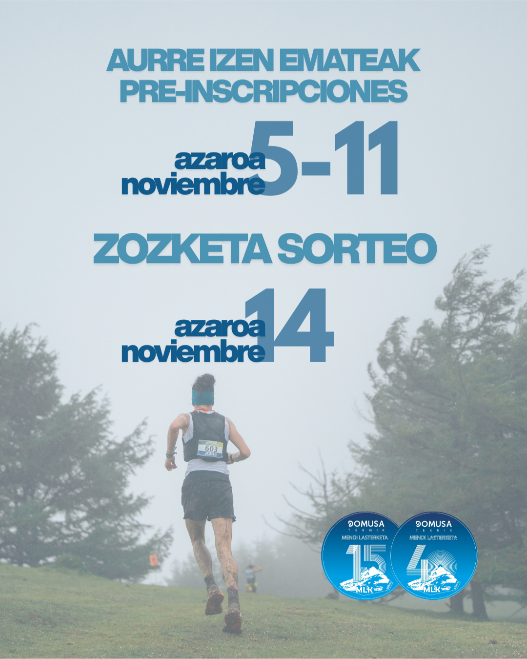 Azpeitiko Lagun Onak Mendi Bazkunako kideok, Domusa Teknik 40 MLK Mendi Lasterketaren bostgarren edizioa ari gara jada antolatzen. Lasterketak 2026eko Maiatzaren 9an izango dira eta aurten ere aurreko edizioan bezala, bigarren distantzia ere izango dugu, 26 kilometrotako luzera duen Domusa Teknik 15 MLK deiturikoa hain zuzen ere.